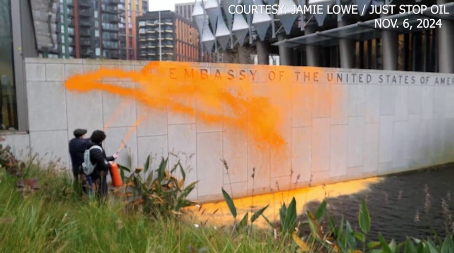 Climate activists in the United Kingdom wasted no time responding to President-elect Trump’s re-election win on Wednesday, spraying orange paint on a section of the U.S. embassy in London in protest. Two members of the environmental group Just Stop Oil covered the embassy’s compound wall with orange paint, according to a video the group posted on […]